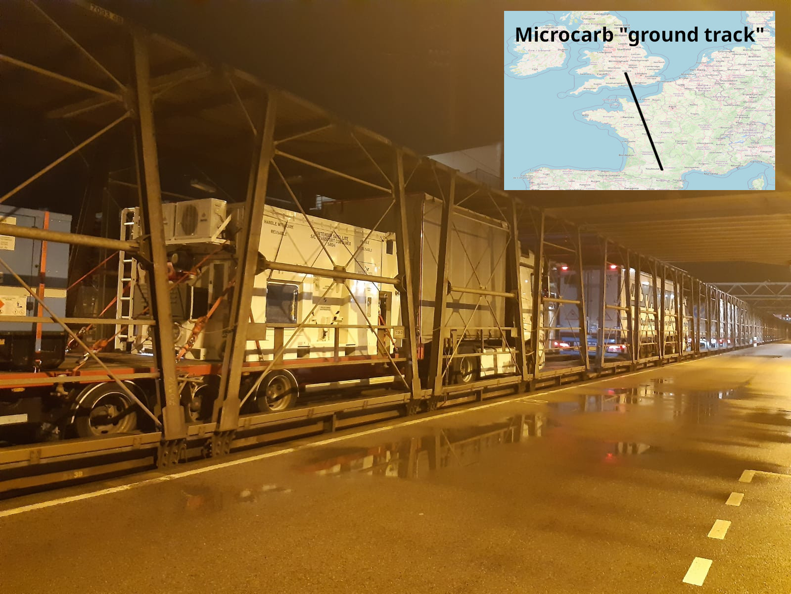 Following the successful completion of its AIT (assembly, integration and test) programme, Microcarb was prepared at the end of January 2024 to depart from Harwell in the UK. It was bound for Toulouse, France.